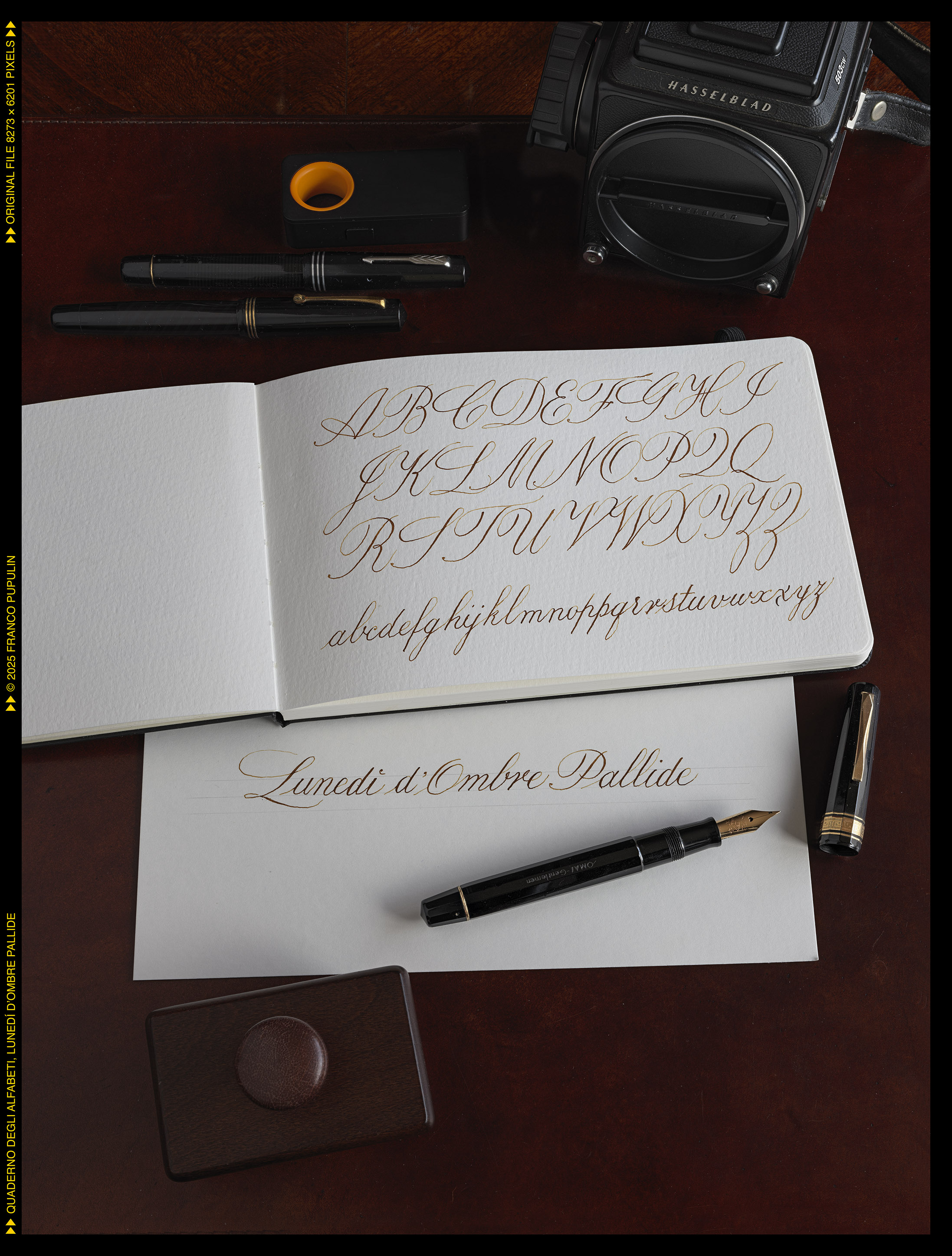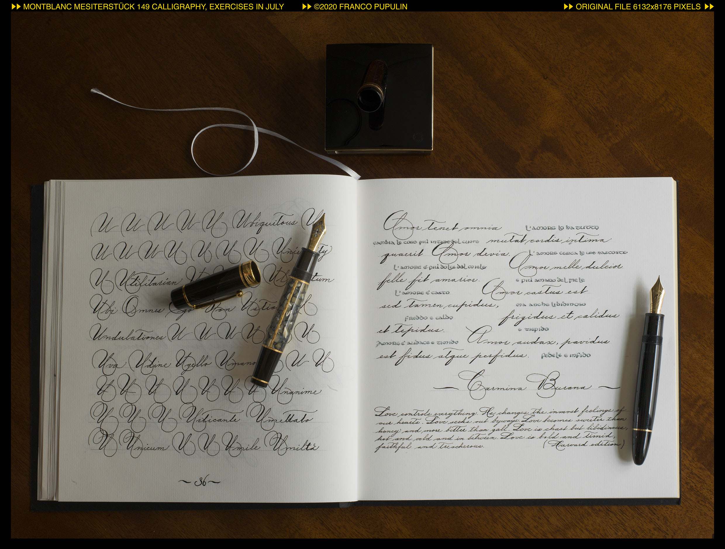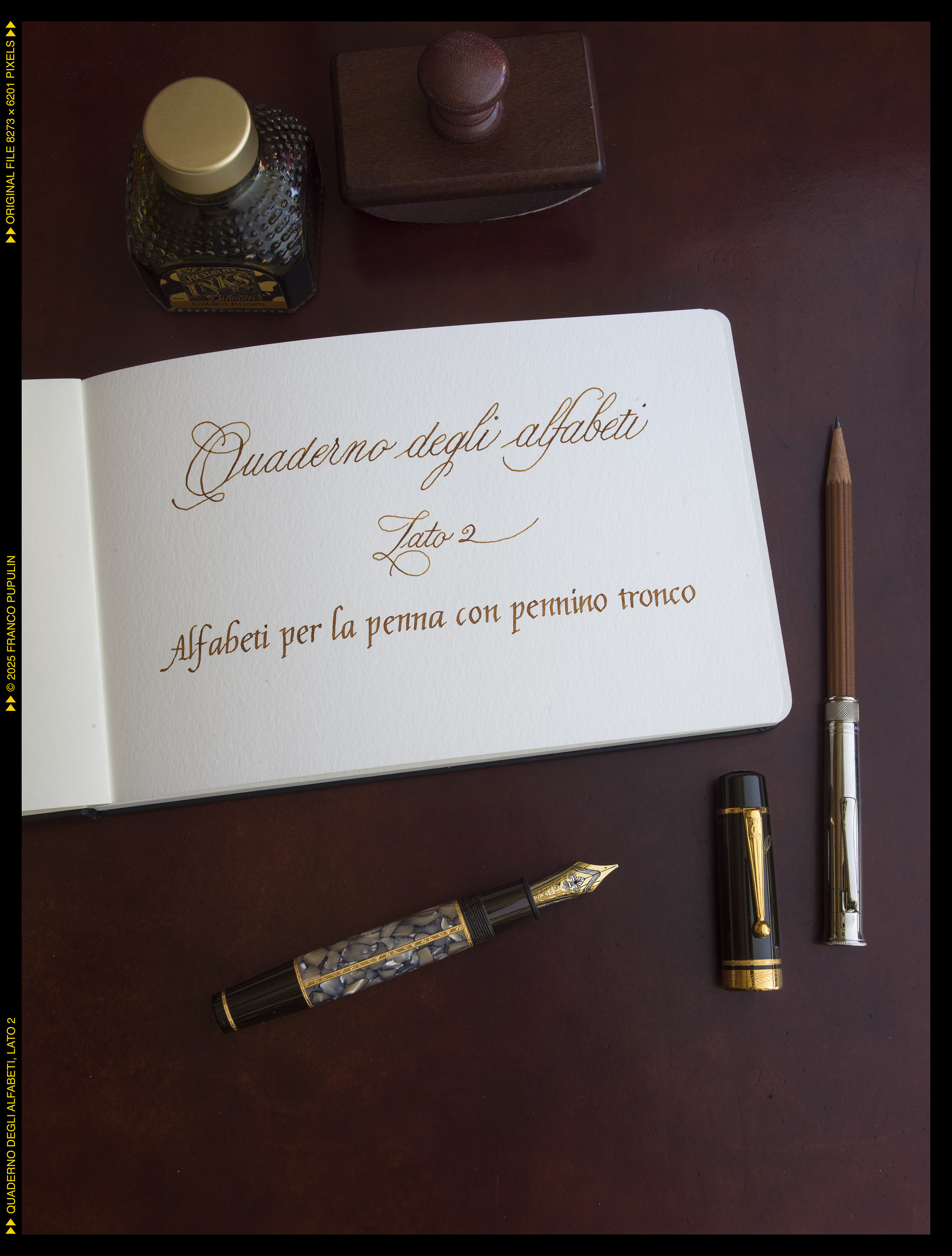 Aprendo il quaderno sul verso, eseguirò gli alfabeti dei quali sono capace, che richiedono peró una punta tronca: onciale, insulare, carolingio, foundational, italico, bastarda, rotonda italiana, ecc.