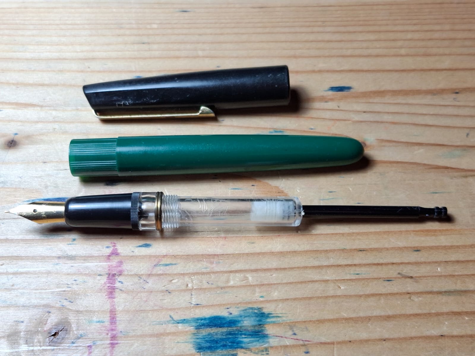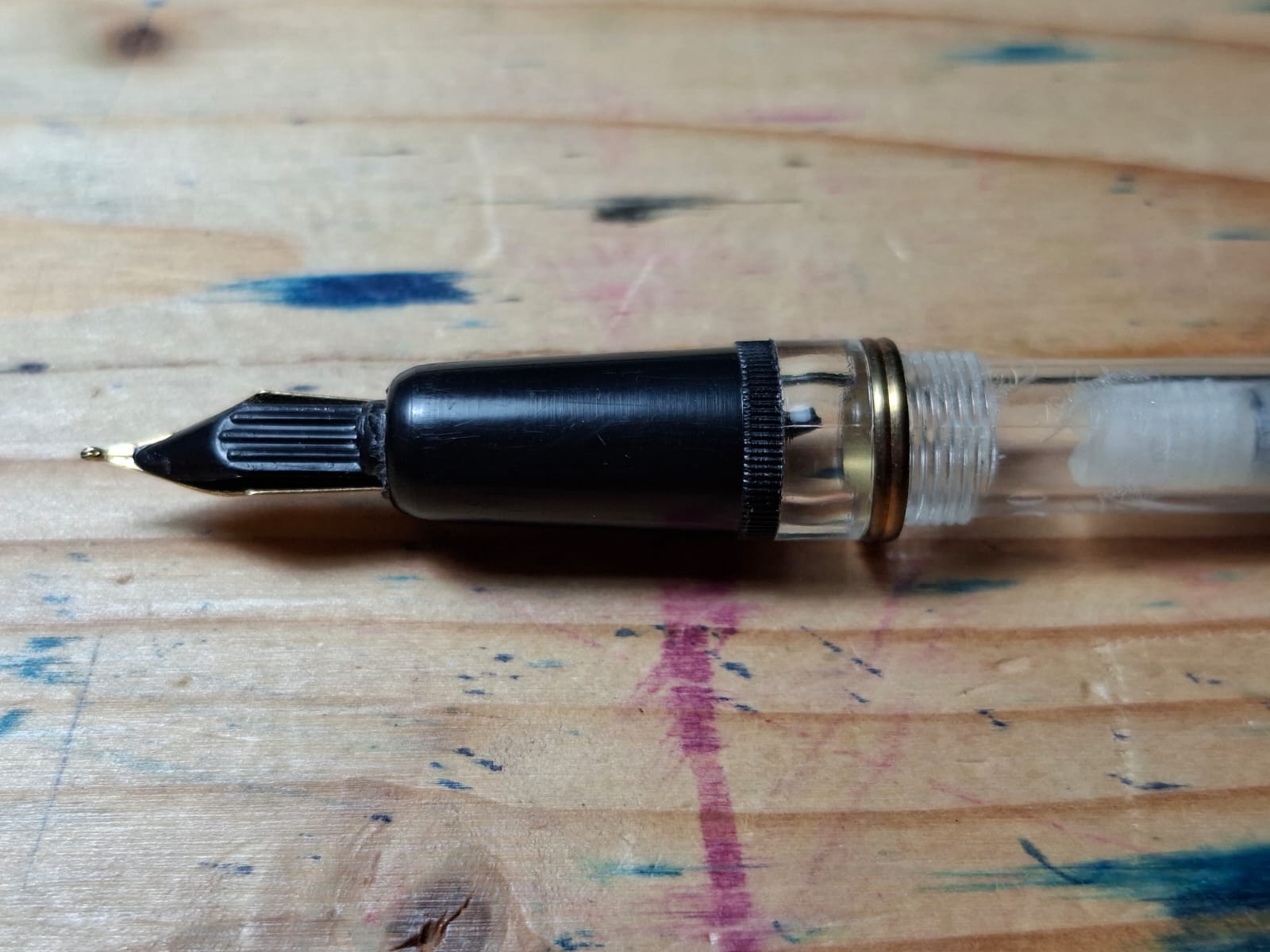 Per quanto riguarda il meccanismo di ricarica, cercando in rete mi pare di aver capito che si tratti di un modello a stantuffo che si ricarica direttamente dal boccetto di inchiostro, anche se i modelli che ho visto online sembravano avere tutti un meccanismo a vite, mentre questa ha un meccanismo simile a una "siringa".