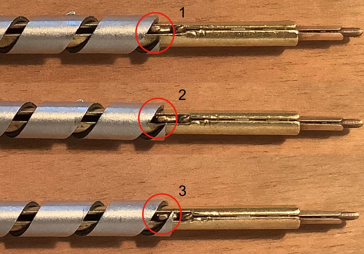 Come si può vedere, durante il normale funzionamento il cursore dell'alimentatore può trovarsi esternamente alla spirale, e il successivo aggancio del cursore da parte dello spigolo della spirale (a esempio per fare rientrare la mina), è questione di decimi di millimetro. Anche solo uno spigolo della spirale arrotondato dall'usura, può compromettere l'intero funzionamento del sistema.