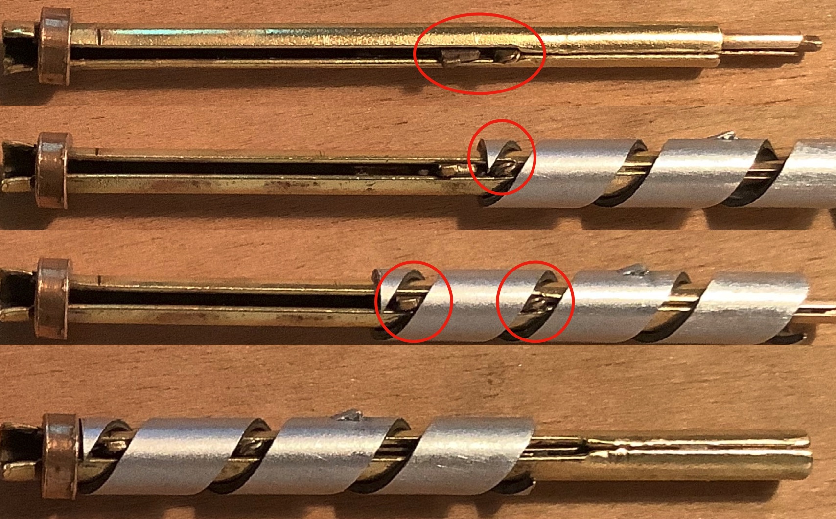 Nell'immagine sotto l'operazione di reinserimento manuale dei cursori nella spirale.