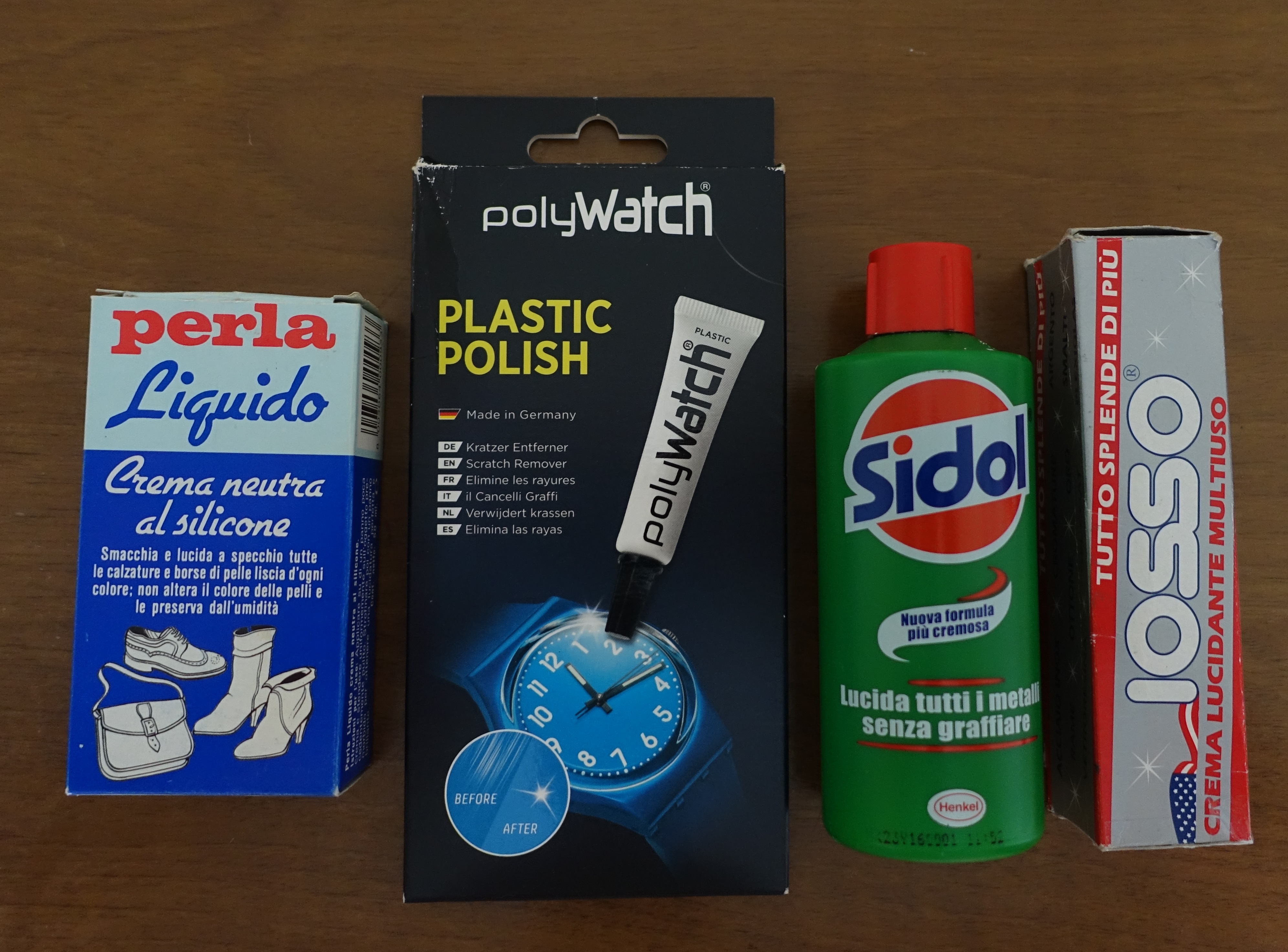 se voglio eliminare un graffio uso la Iosso, posso farlo anche con il comune Sidol ma gli sforzi e il tempo impiegato si moltiplicano per 5 ed inoltre non rimane la stessa brillantezza che si ottiene con la Iosso, il massimo della brillantezza la ottengo usando il Polywatch e di certo gratta molto meno.