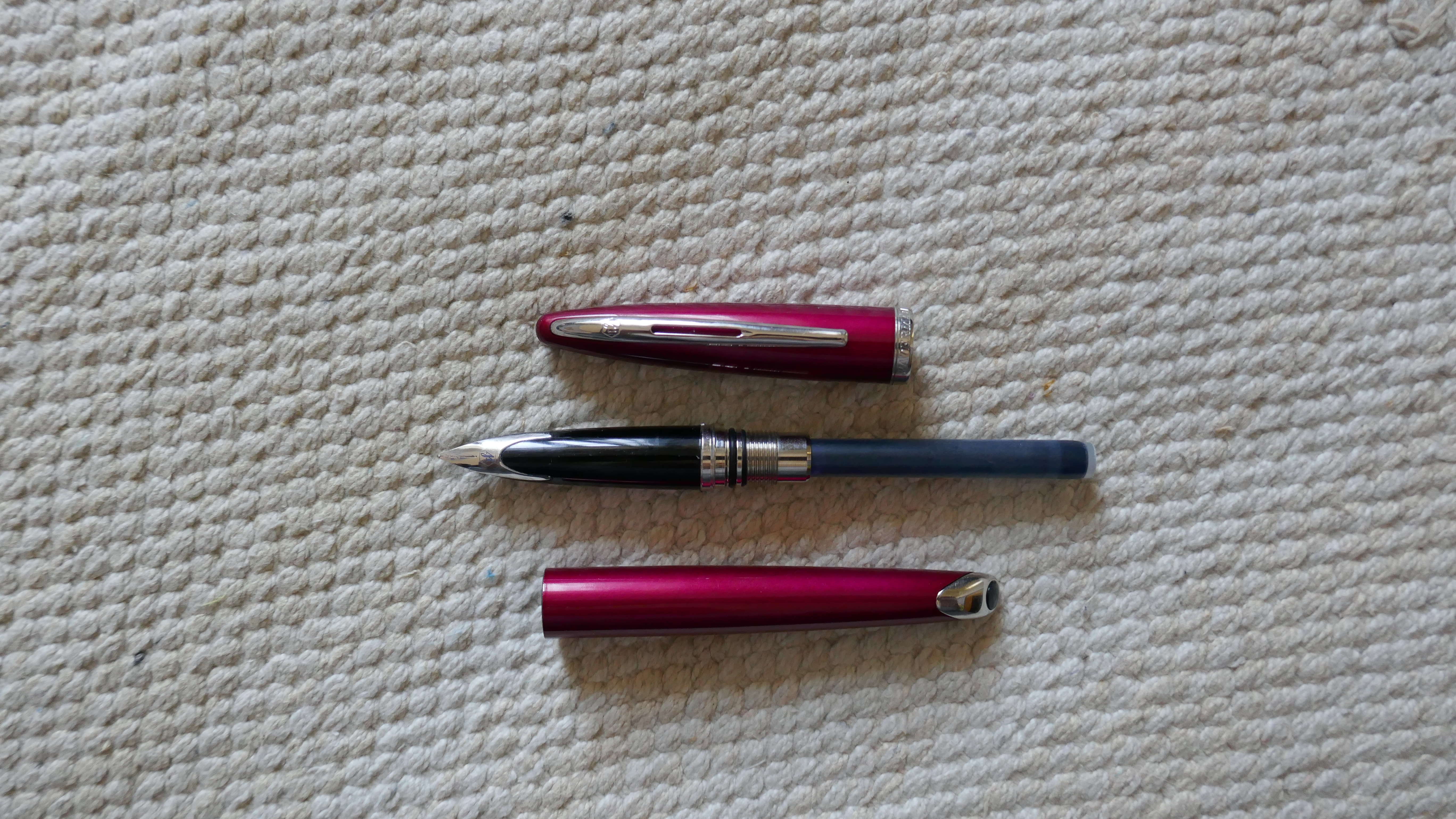Devo dire che mi sto un po' ricredendo sulle Waterman. ne ho una scolastica (brutta ) una corta sfaccettata e ritorta (insomma) , una Phileas ed una Charleston ( mi piace molto ) che a dispetto delle recensioni non da mai false partenze e scrive in modo continuo, senza tratteggiare, con un flusso d'inchiostro non eccessivo, tratto medio ma francamente mi sembra un fine.